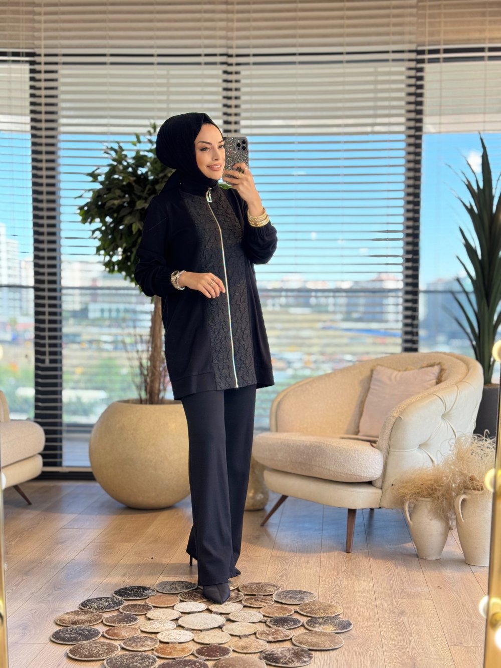 02-2661 Ön Arka Kabartma Desen Parçalı Takım Siyah