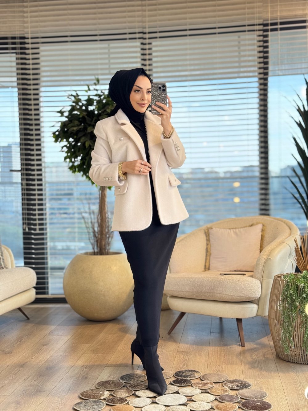 1005252 Tilki Tüylü Blazer Ceket Bej