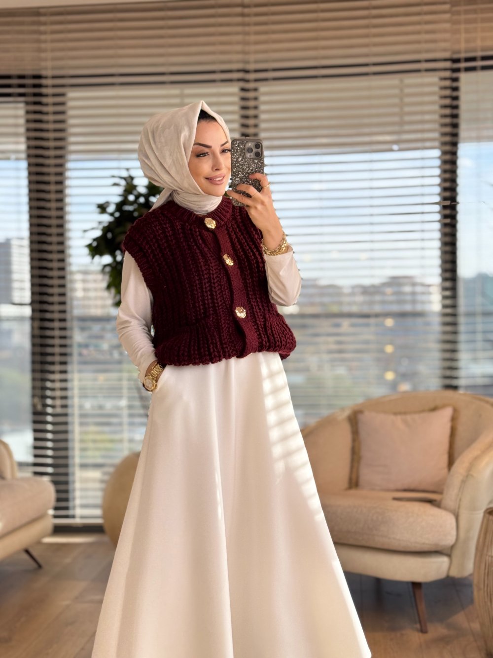 1005391 Metal Düğmeli Triko Yelek Bordo