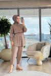 10529 Cep Taş Baskı Bel Büzgülü Gömlek Bej