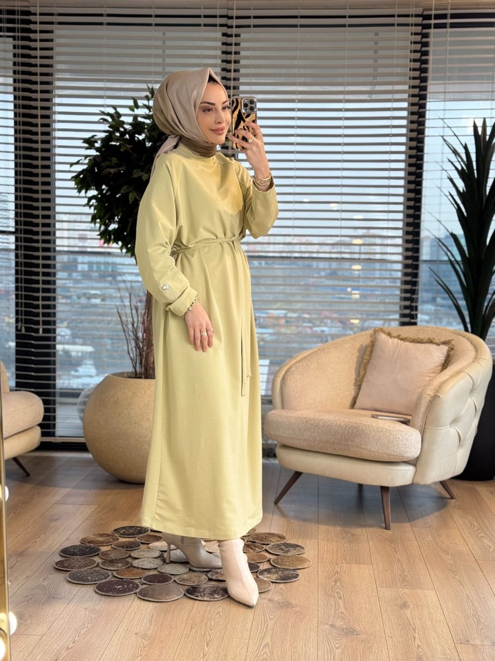 12671 Sol Kolu Çıtçıtlı Elbise Yağ Yeşili