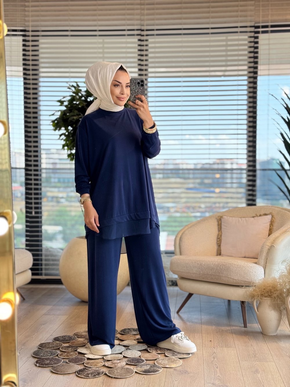 14352 Etek Ucu Şifonlu Takım Lacivert