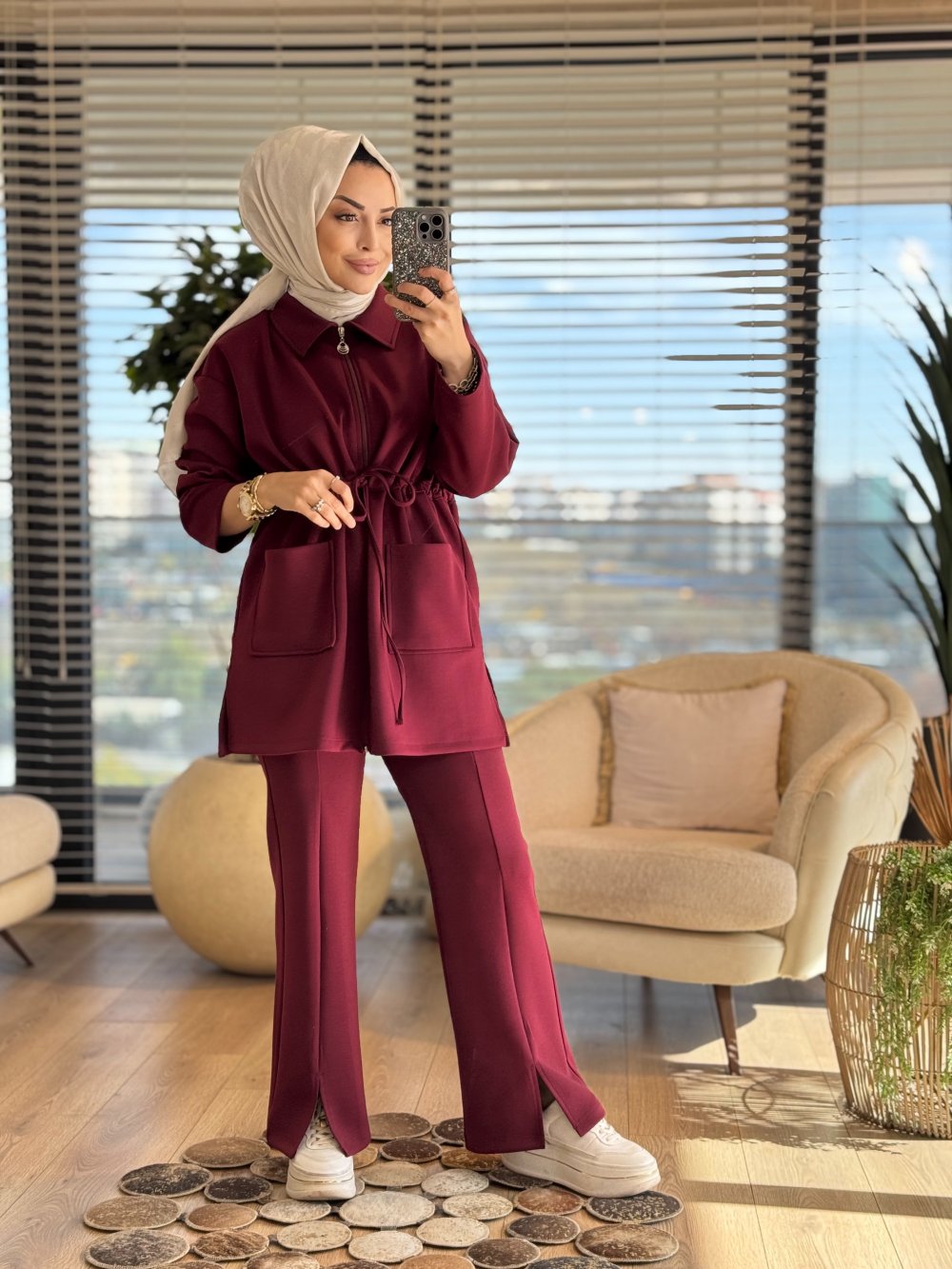 2121 Ön Bağcıklı Ve Cepli Takım Bordo