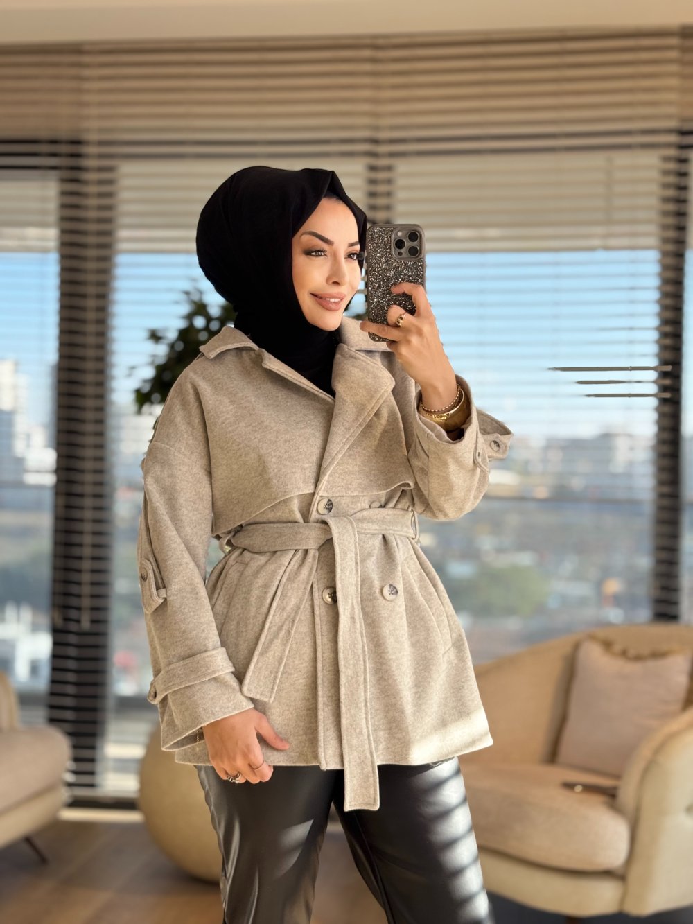 2221 Kaşe Apoletli Kısa Kaban Gri