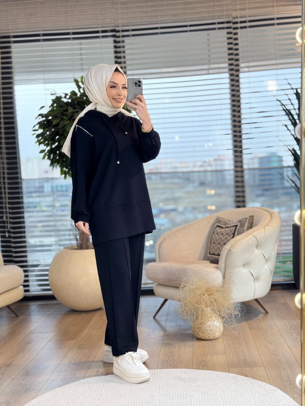 Siyah Güler Pantolonlu Takım Tesettür Giyim