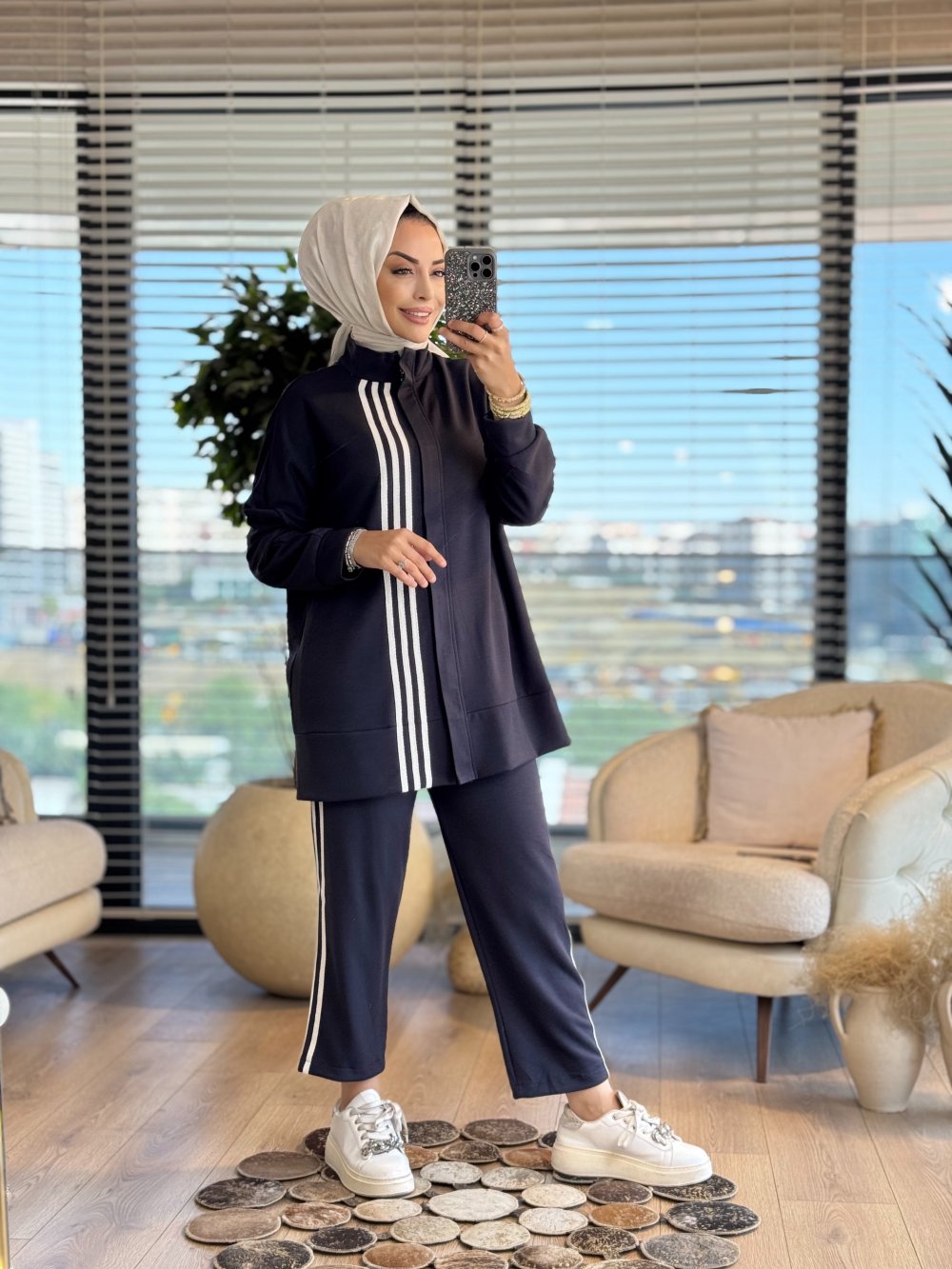22754 Ön Ve Pantolon Yanı Çizgili Takım Siyah