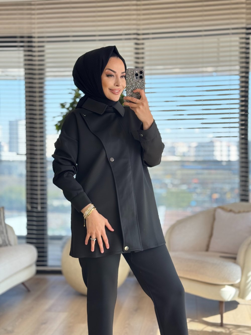 22759 Ön Parça Detaylı Takım Siyah