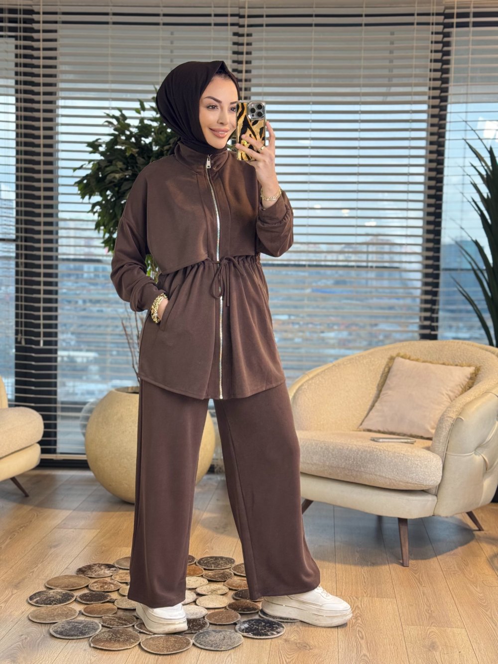 22839-5 Roba Parçalı Fermuarlı Takım Kahve