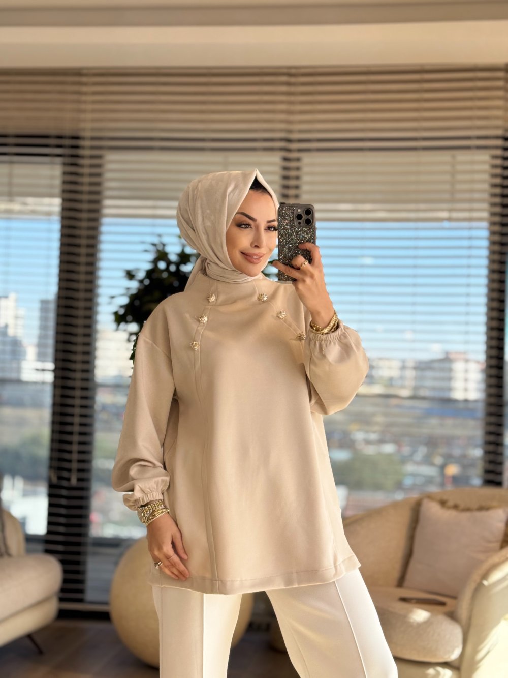 24134 Çiçek Tunik Bej