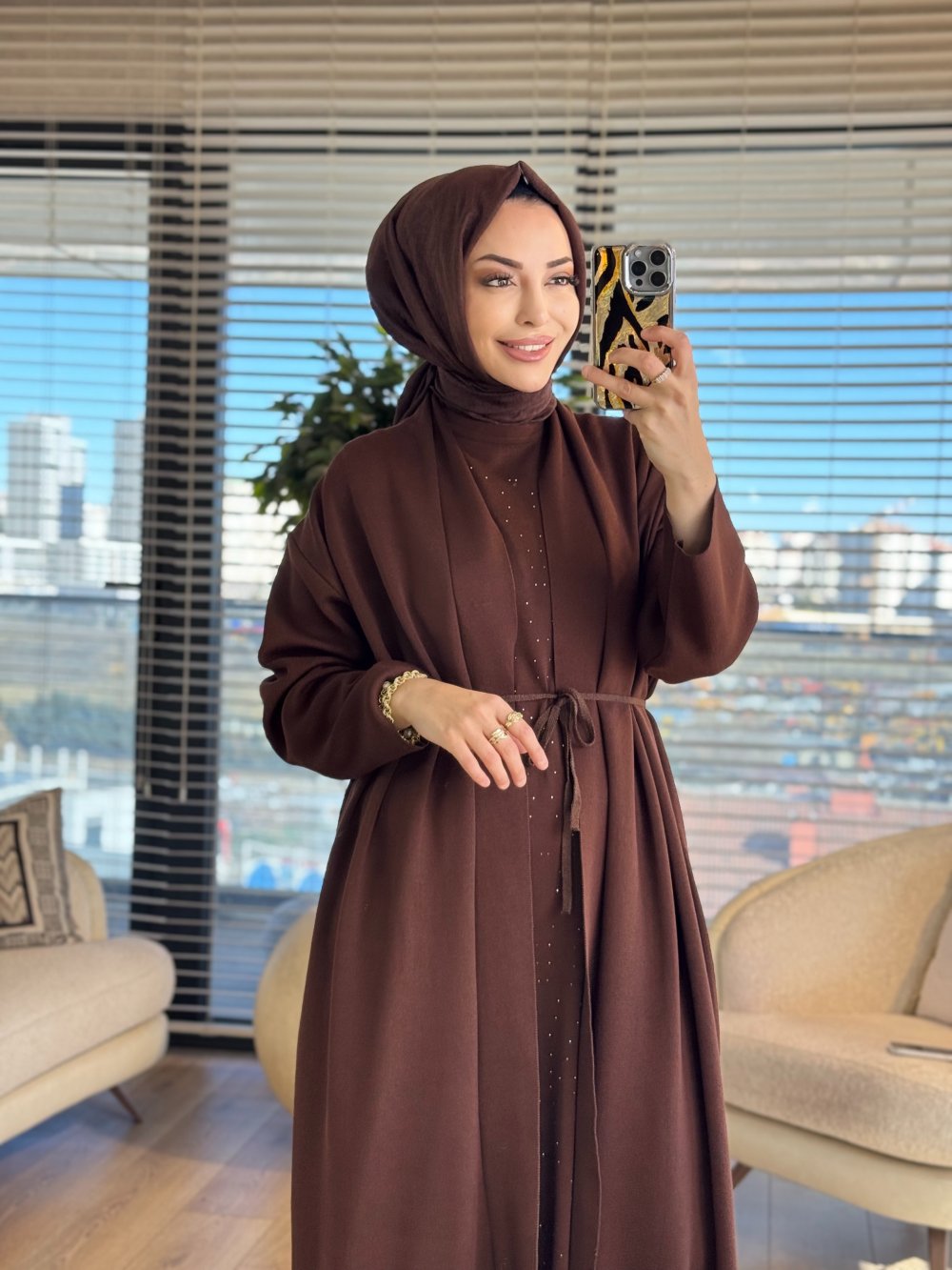 25204 Hırkalı İçi Taş Baskılı İkili Takım Kahve