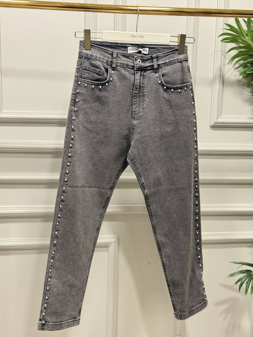 2805 Yanları Zımba Detaylı Kot Pantolon Gri