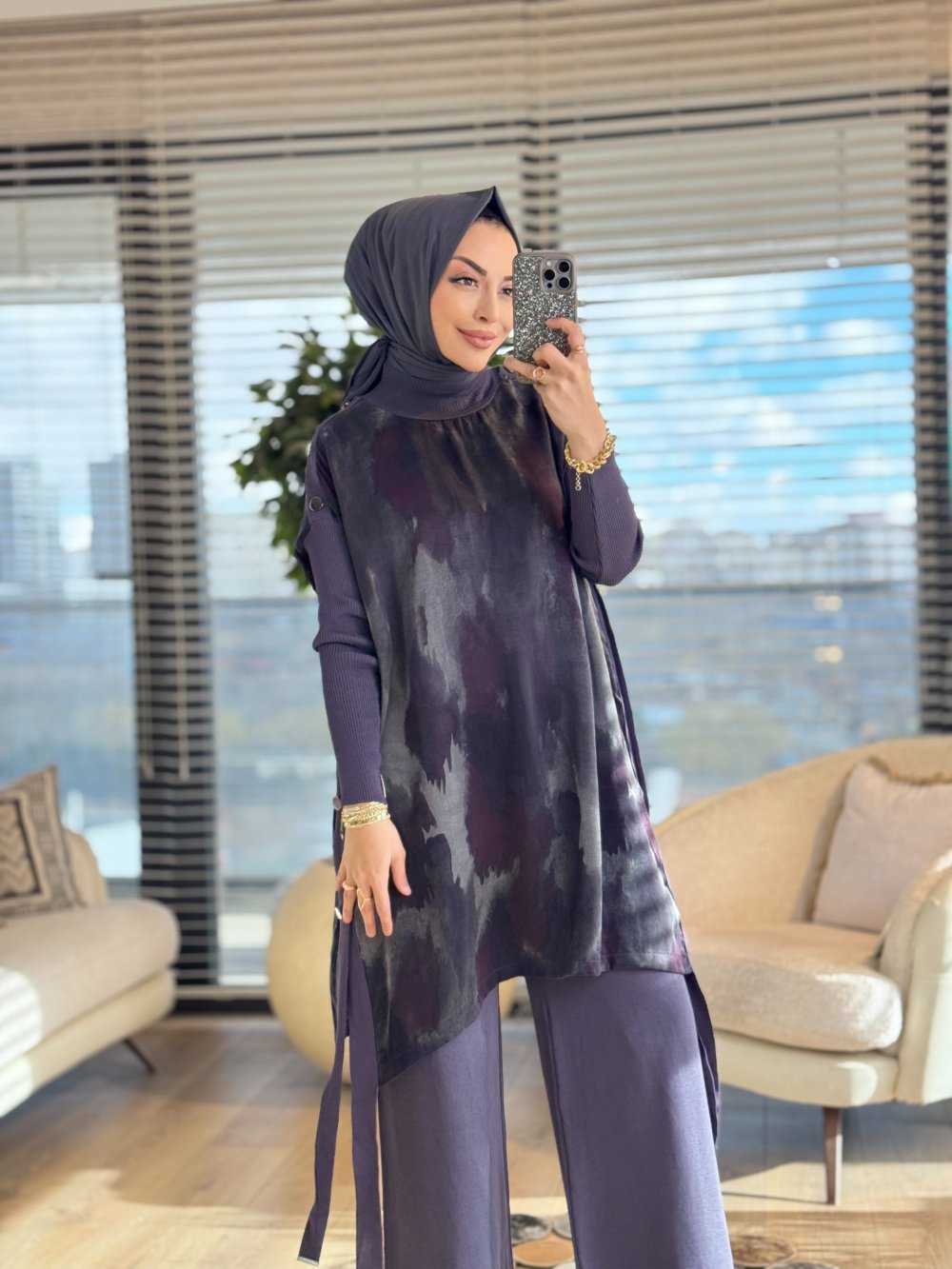 283 Kupra Omuz Ve Yanları Düğmeli Triko Tunik Antrasit