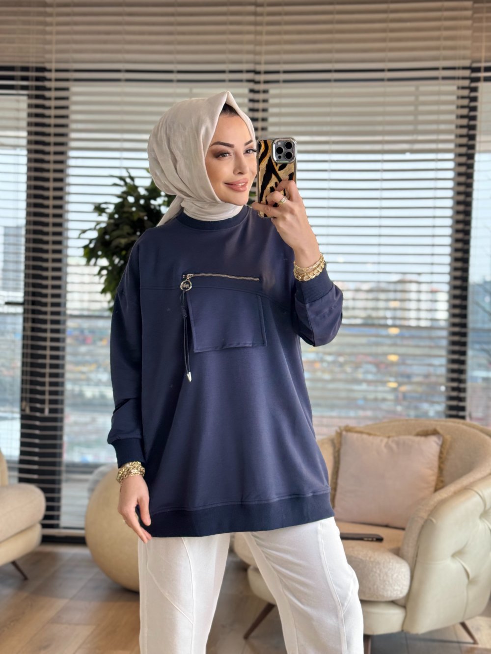 3051 Cebi Fermuar Detaylı Sweatshırt Siyah