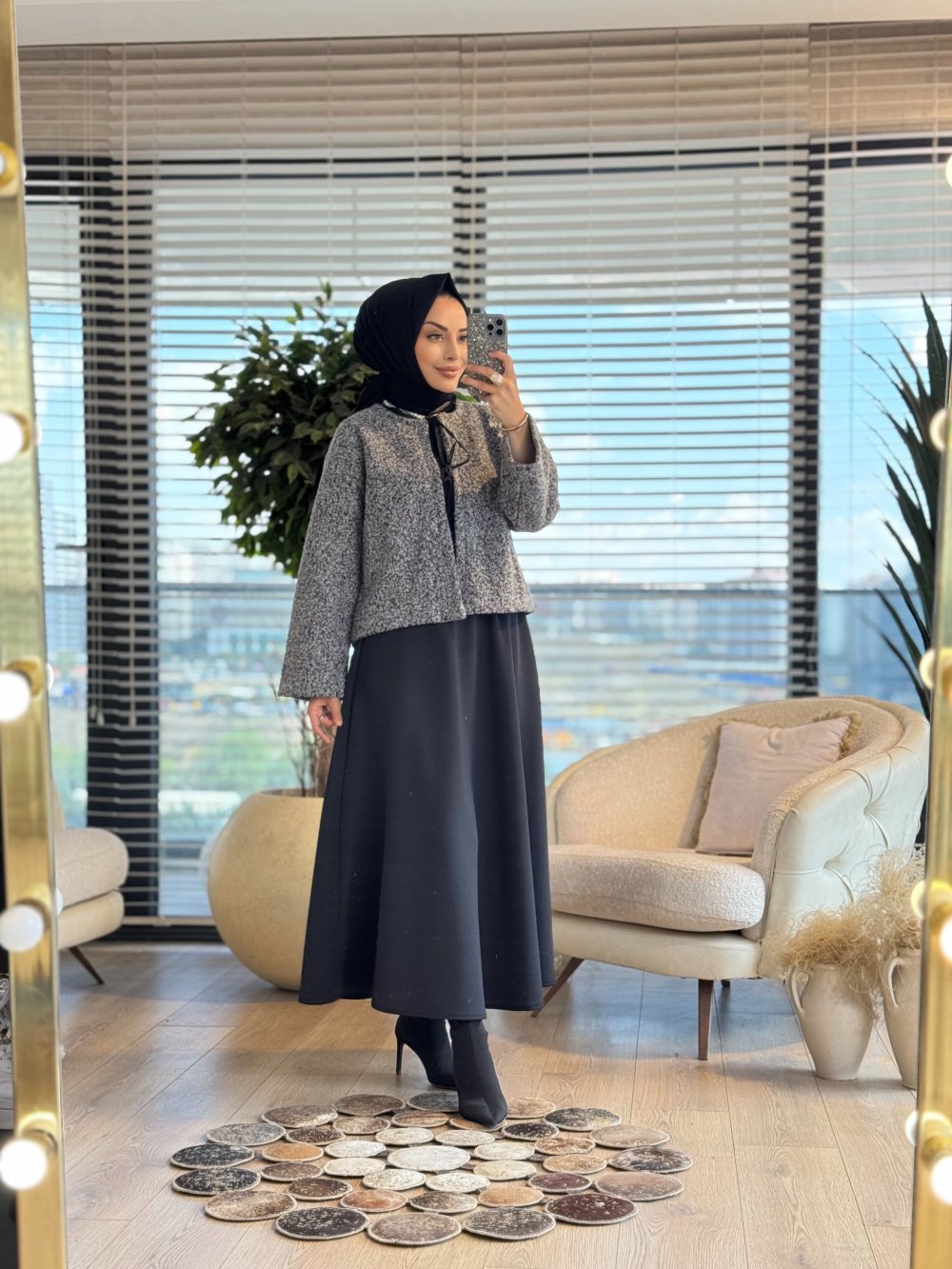 3131 Bukle Bağcık Detaylı Kimono Ceket Antrasit