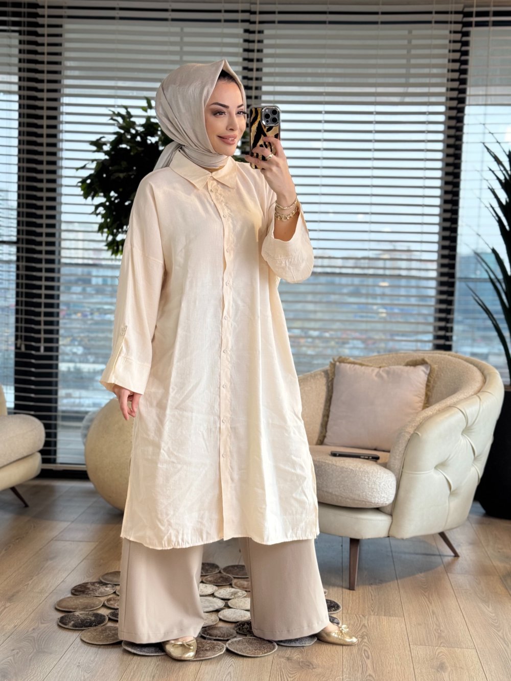 3219 Manşeti Apolet Detaylı Gömlek Bej