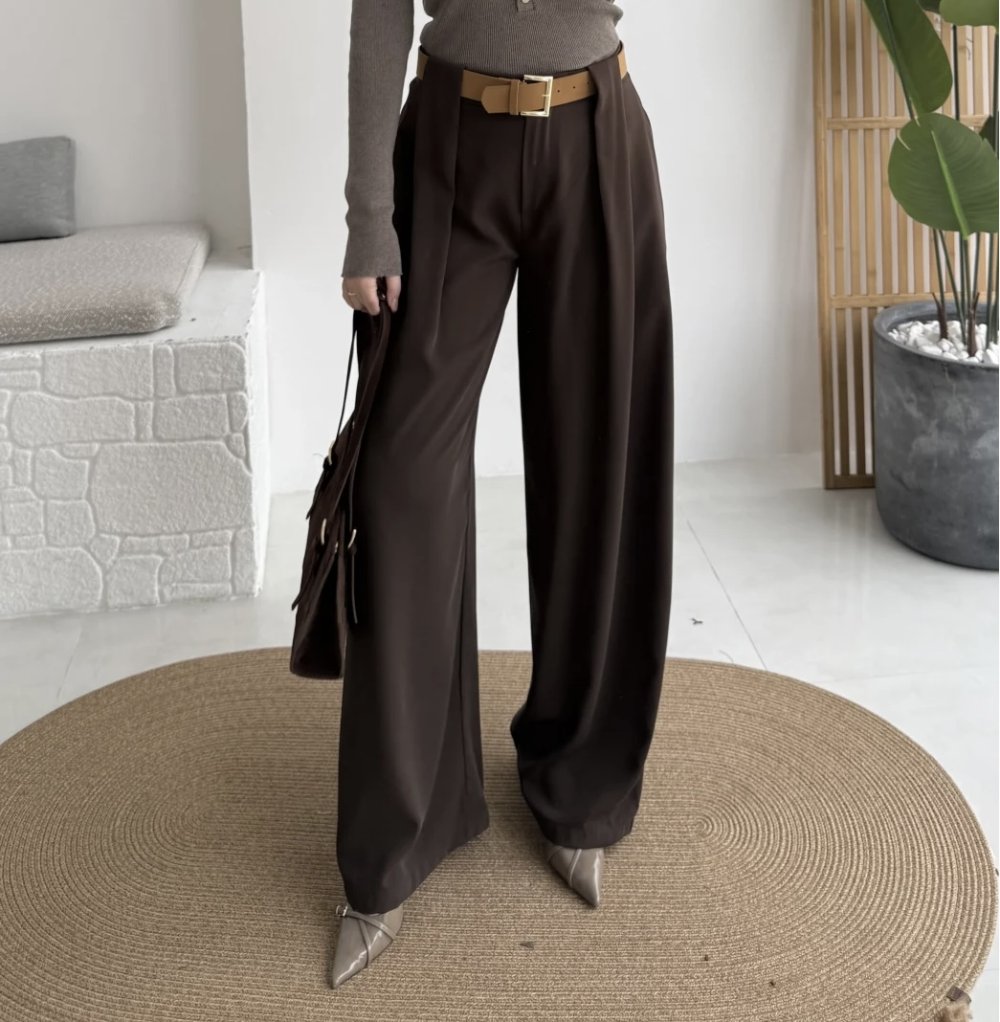3855 Geniş Köprü Detaylı Kemerli Pantolon Kahve