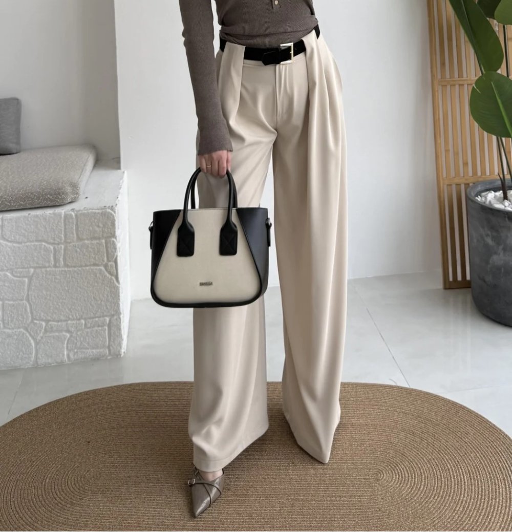 3855 Geniş Köprü Detaylı Kemerli Pantolon Siyah