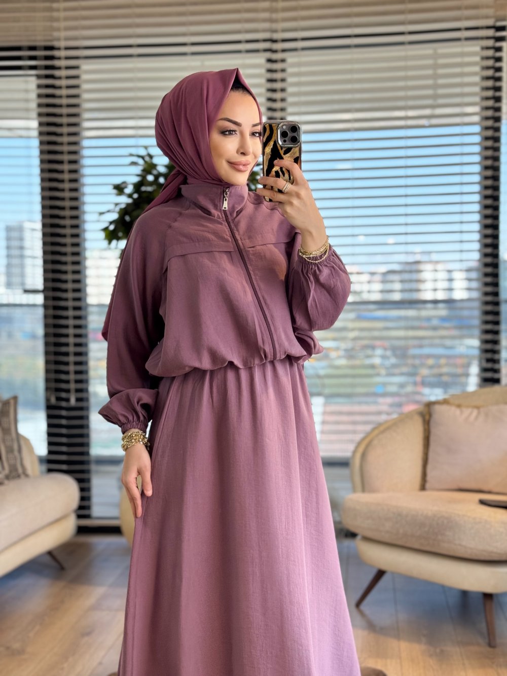 4454 Roba Parçalı Ön Fermuarlı Takım Gül