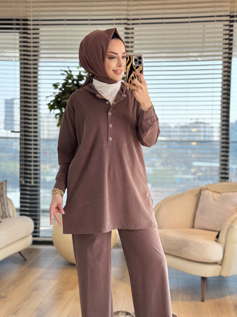 4480 Roba V Dikişli Patı Çıtçıtlı Kapşonlu Takım Kahve