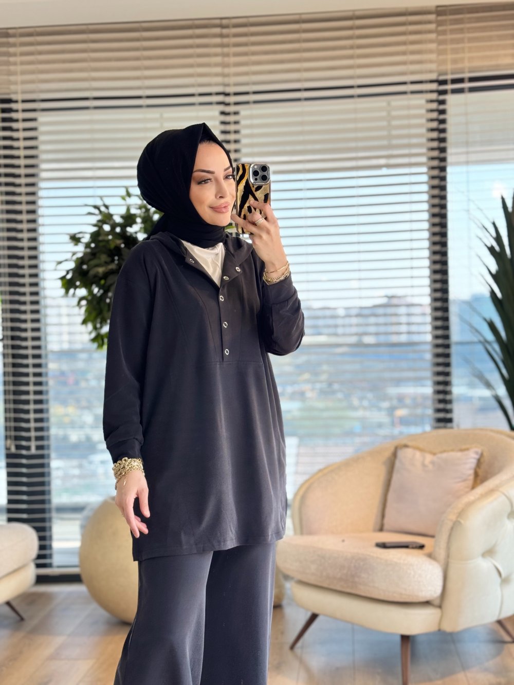 4480 Roba V Dikişli Patı Çıtçıtlı Kapşonlu Takım Siyah