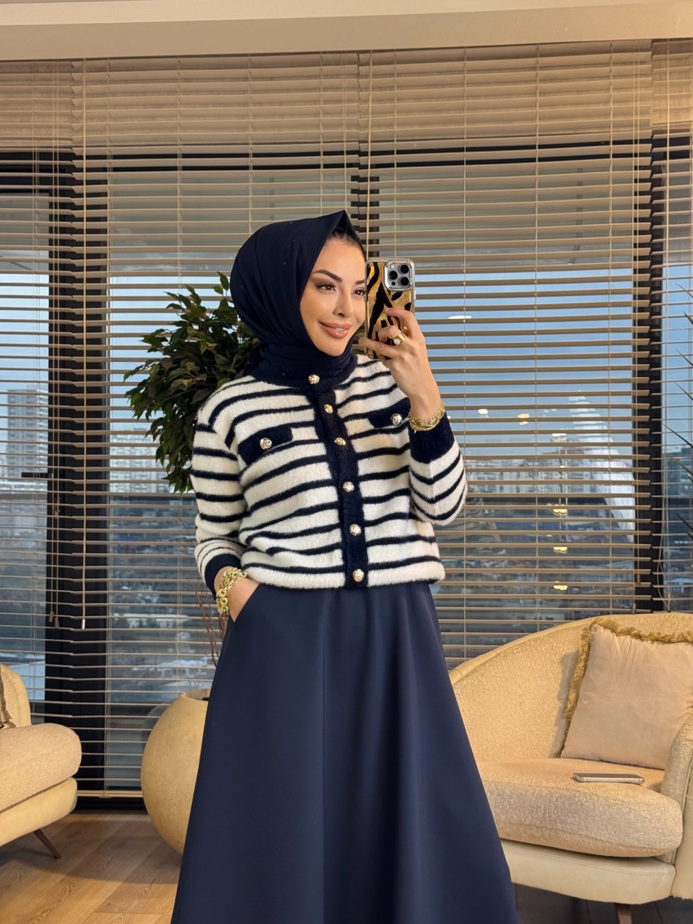 5732 Enine Çizgili Angora Hırka Lacivert