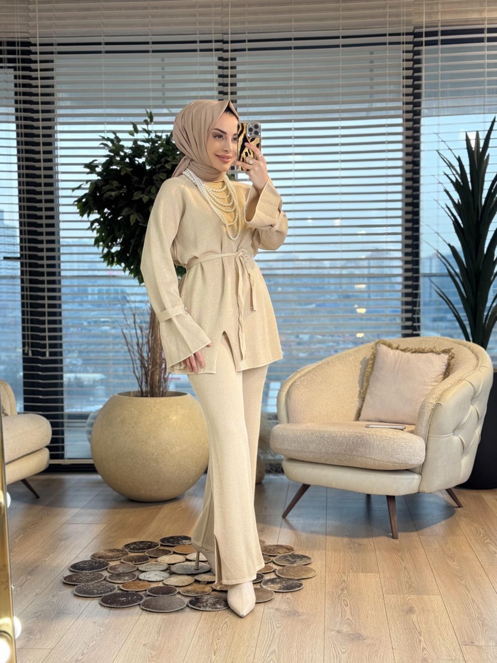 6691 Simli İspanyol Kol Takım Bej