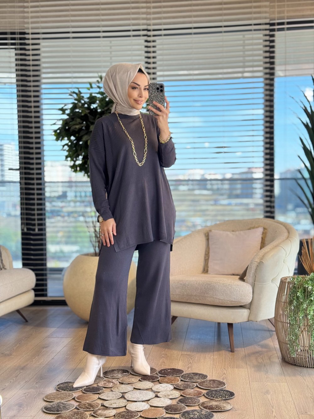 7016 Vanezia Fitilli Triko Pantolonlu Takım Antrasit