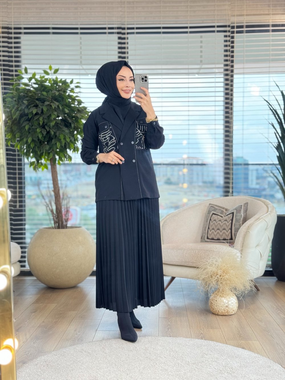 Siyah Güler Pantolonlu Takım Tesettür Giyim