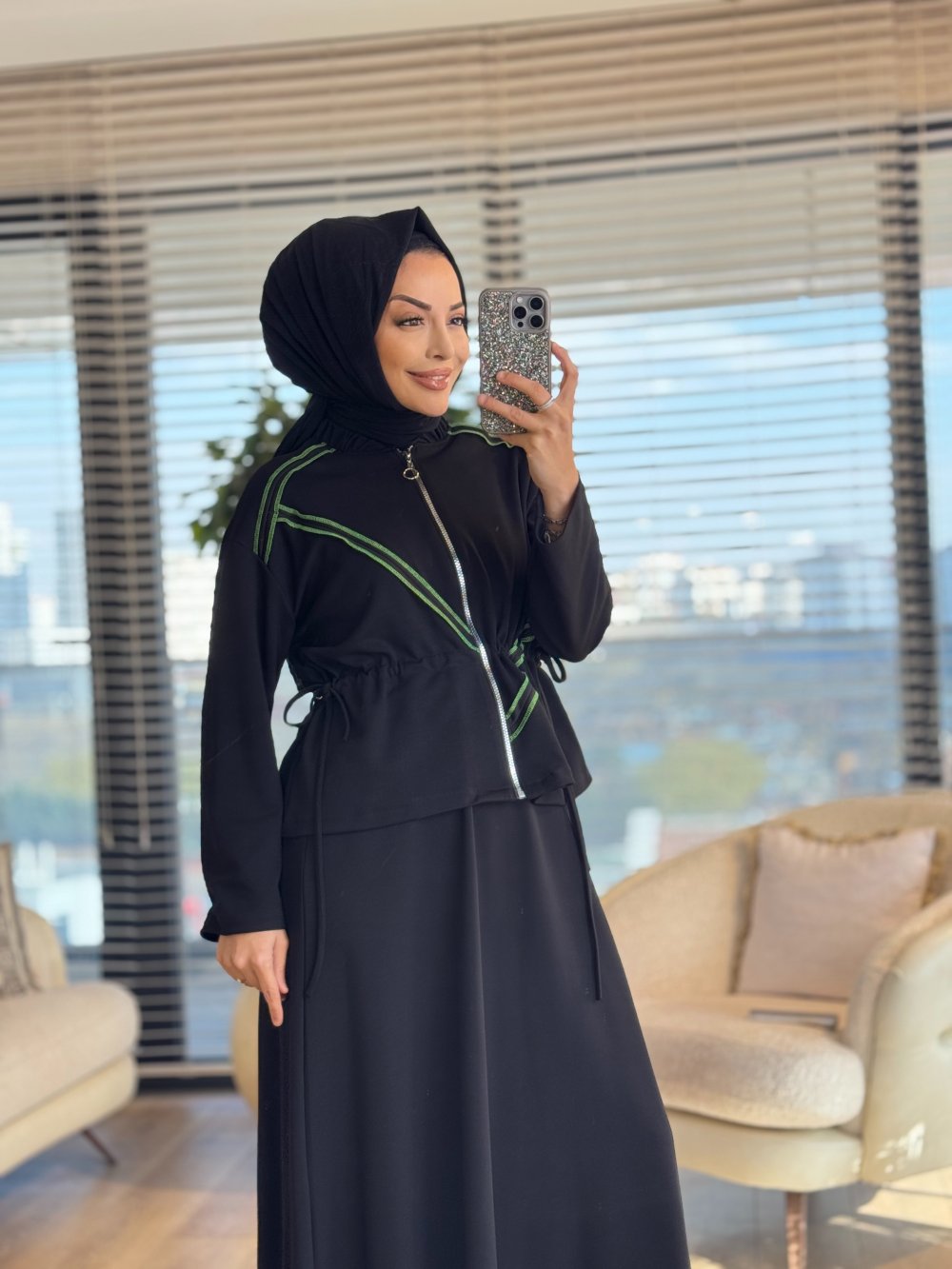 72020 Dikiş Detaylı Fermuarlı Etekli Takım Siyah