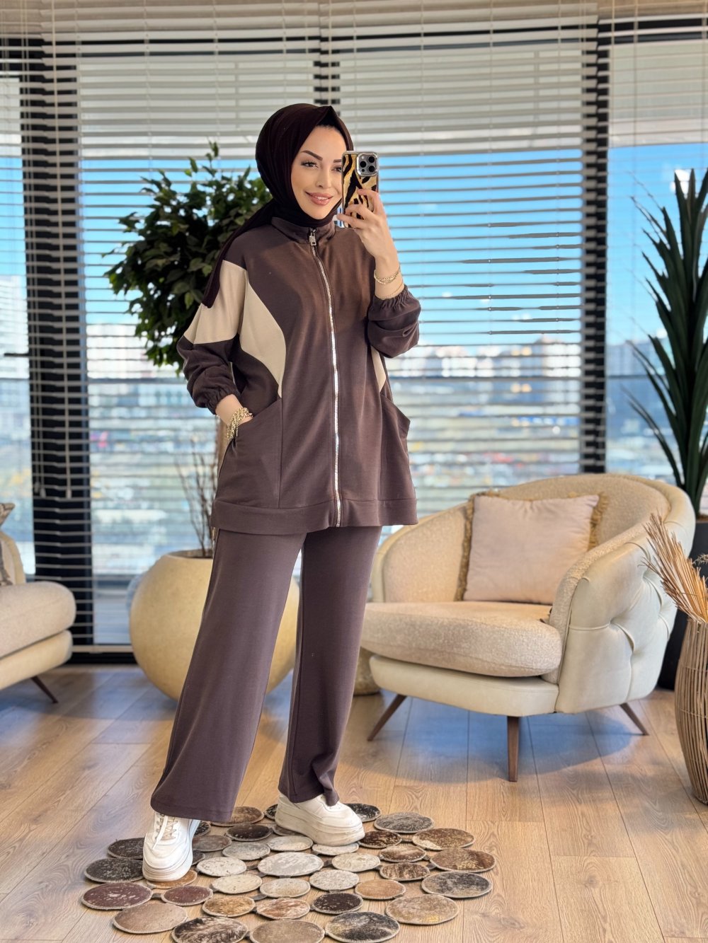 73076 Yanları Cepli Fermuarlı Takım Kahve