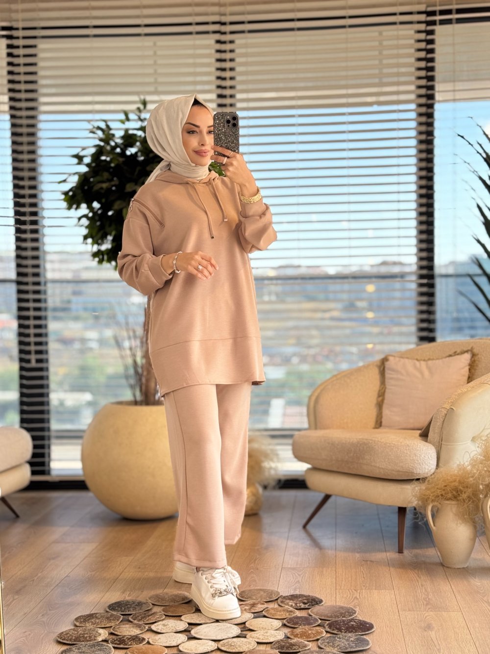 7409 Sol Omuzu Fermuar Detaylı Takım Bej