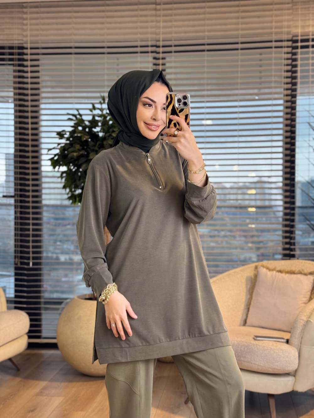 7474 Oysho Patı Fermuarlı Tunik Haki