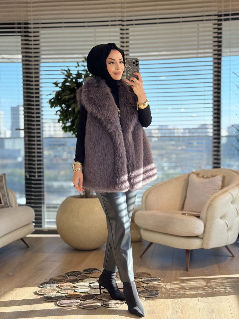 7921 Peluş Yakalı Düğmesiz Yelek Antrasit