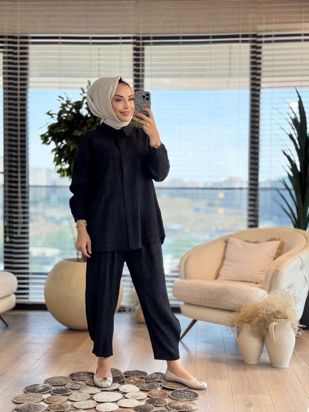 8532 Batik Gofre Paçası Dikişli Takım Siyah