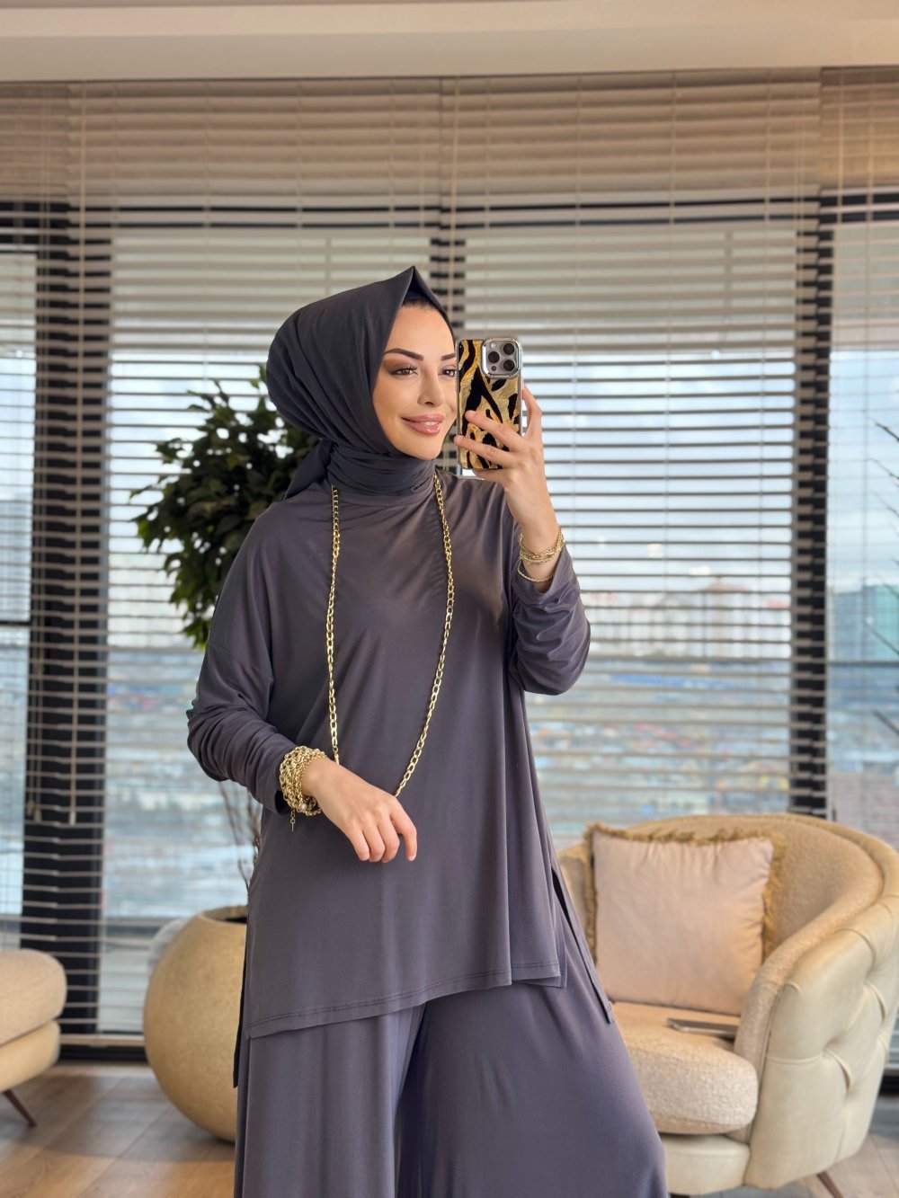 Tunik ön boy 73 cm, arka boy 79 cm, pantolon boy 101 cm