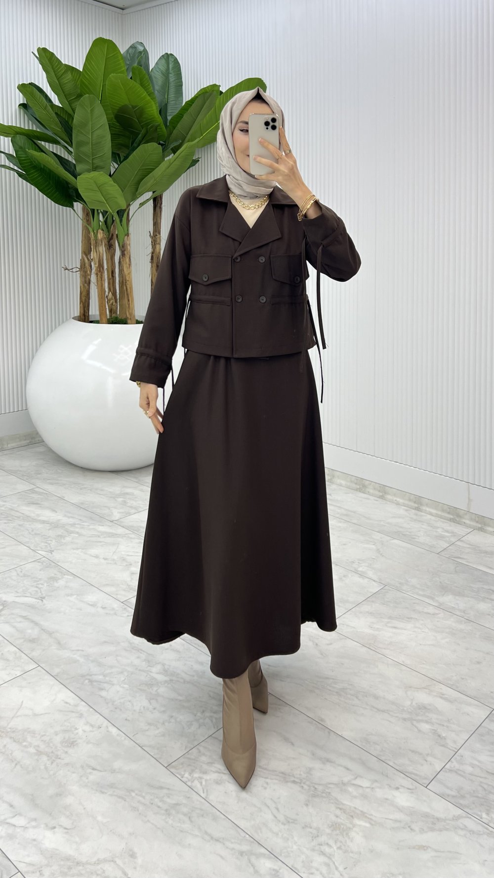 Acı Kahve Delal Etek Takım Tesettür Giyim