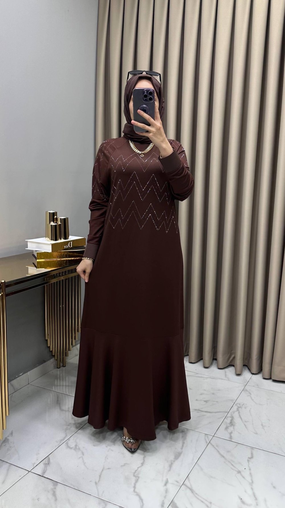 Aleyna Abiye Elbise Kahve