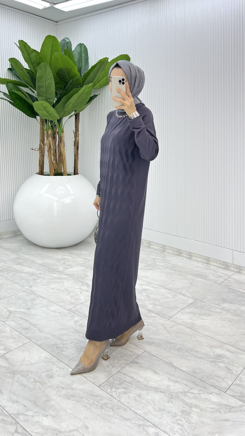 Antrasit İzel Triko Elbise Tesettür Giyim