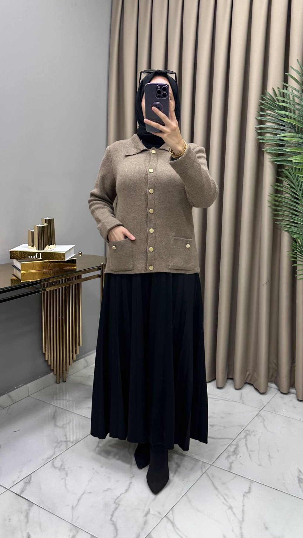 Ayla Çelik Örme Triko Hırka Vizon