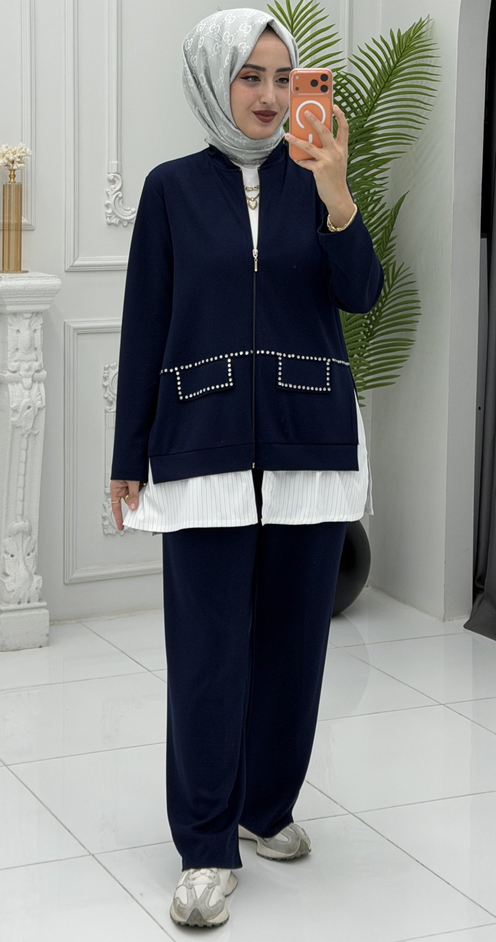 Aylin Takım , hem iş hem de günlük hayatınızda rahatlıkla tercih edebileceğiniz çok yönlü bir parçadır. Şıklığı konforla buluşturan bu tasarım, sezonun en gözde modellerinden biri olacak