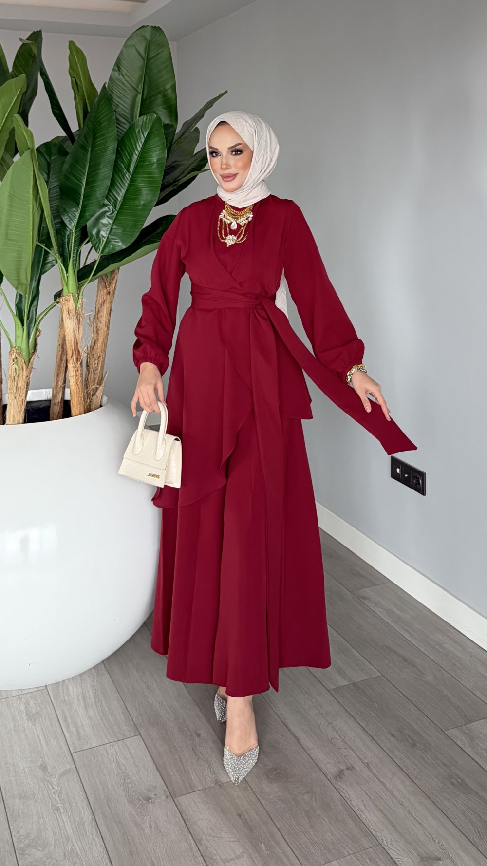 Bordo Cevher Pantolon Takım Tesettür Giyim
