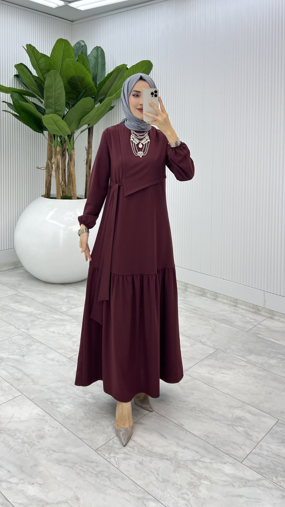 Bordo Premıum Seçil Elbise Tesettür Giyim