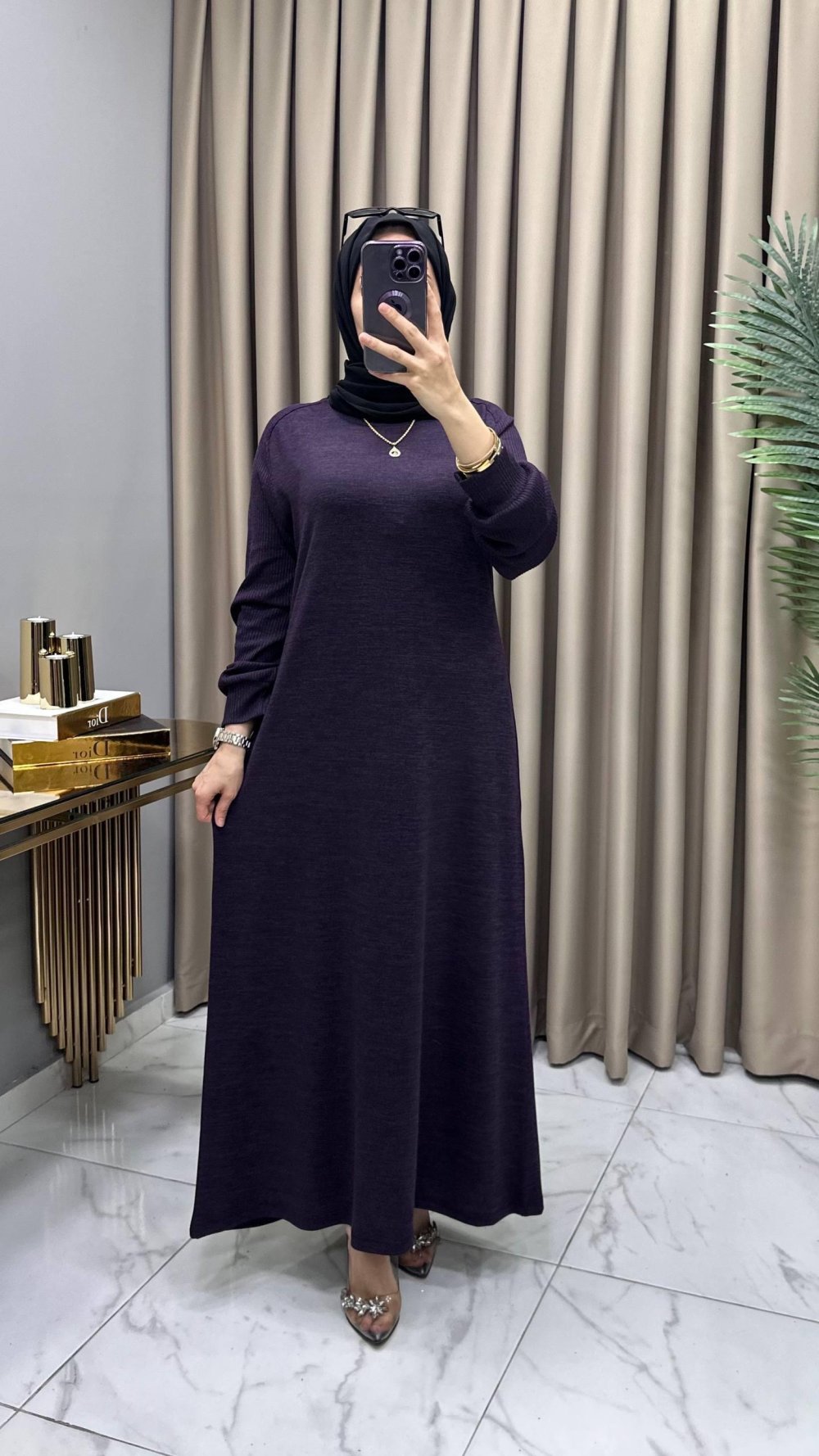 Buğlem Elbise Kolye Hediyeli Mürdüm