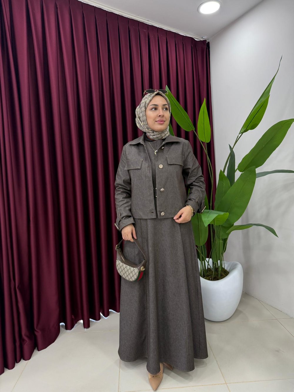 Ceketli Kot Elbise Kahverengi