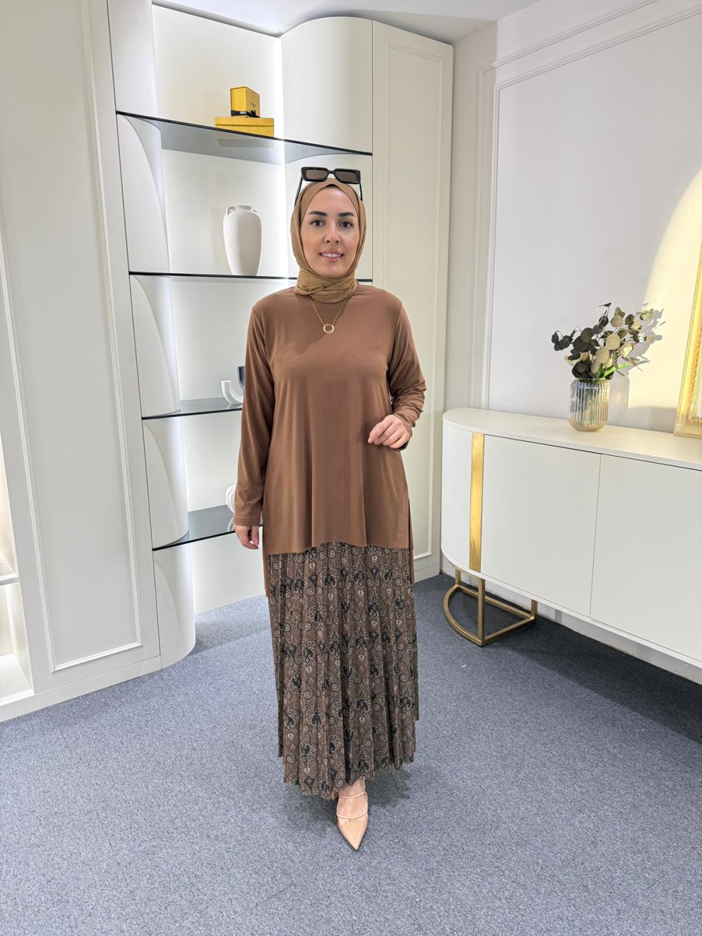 Tunik ön boy 75 cm, arka boy 85 cm’dir.