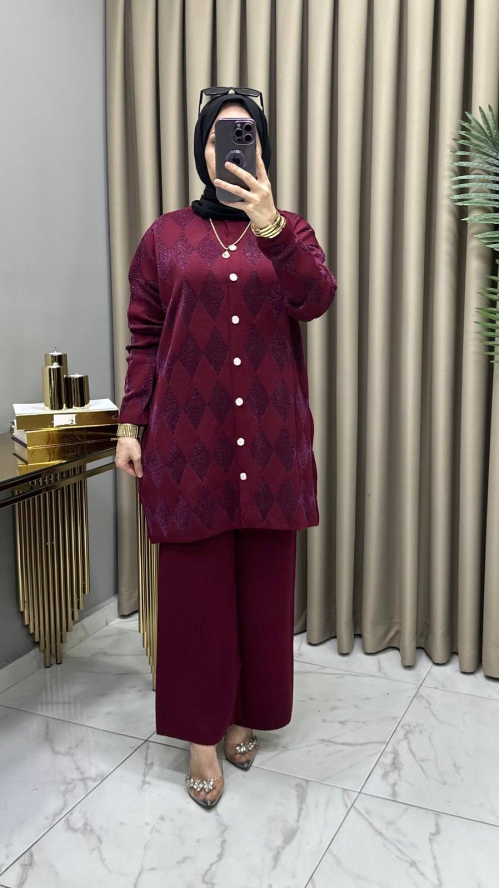 Evin Hırkalı Takım Bordo