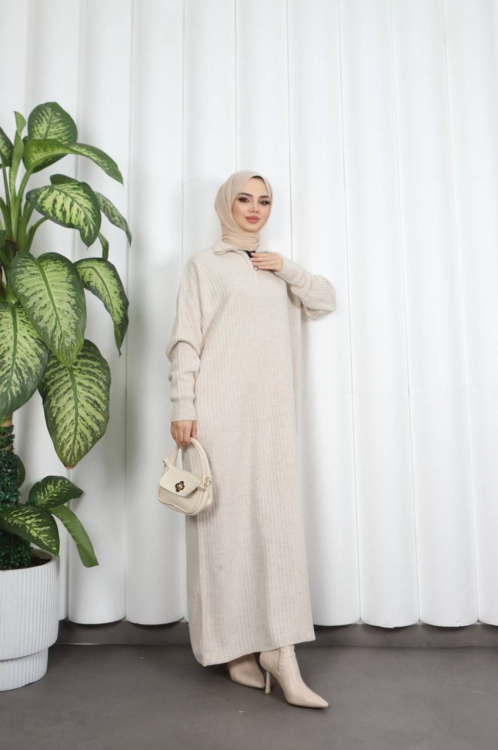 Fermuarlı Triko Elbise
