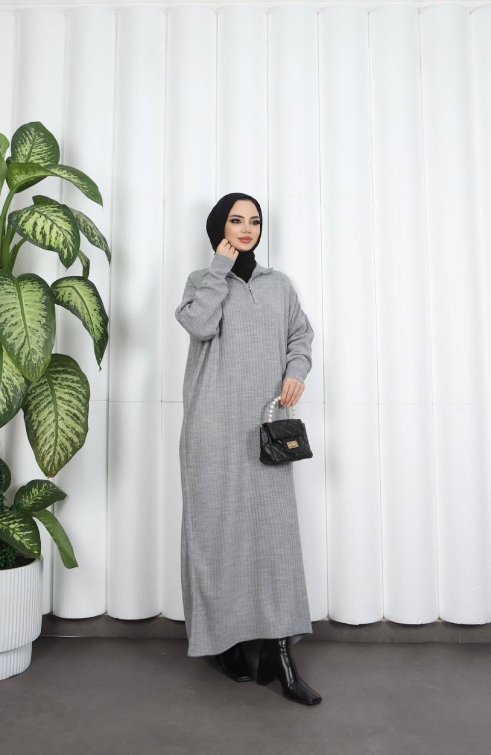 Fermuarlı Triko Elbise