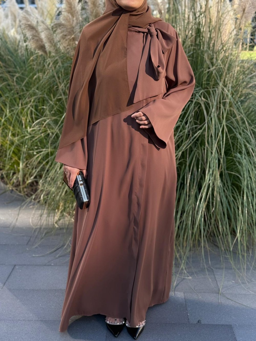 Fular Bağlamalı Abaya Kahverengi