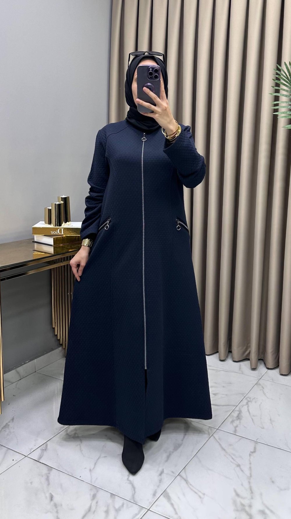 İkbal Yün Kapitone Ferace Kaban Lacivert